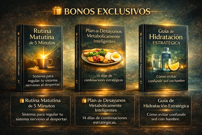 Al adquirir GELATINA METABÓLICA hoy, recibirás completamente GRATIS estos 3 bonos exclusivos que potenciarán tu estabilidad metabólica y reforzarán tus resultados desde el primer día: